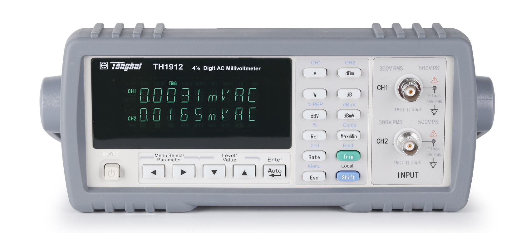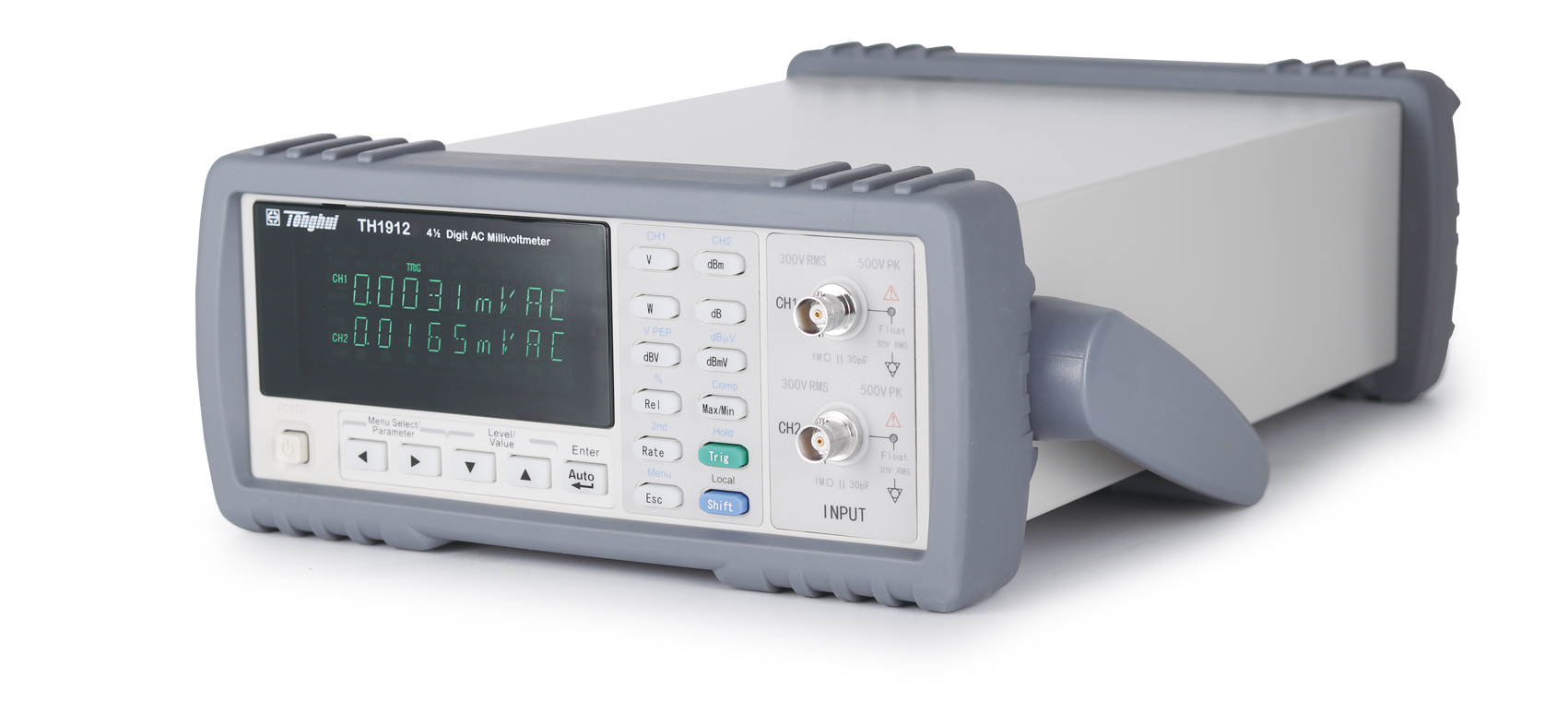 ■ TH1912雙通道數(shù)字交流毫伏表。主要用于工廠、研究所、部隊、科研實驗室。測量5Hz-3MHz正弦電壓,也可作為功率計使用。電壓、電平和功率電平(任意阻抗)測量。信號源的頻率響應直讀誤差%,放大器增益dB,衰減器衰減量dB,音響設備和有線電傳輸電平的測量。電壓探頭電路板測試安全方便。