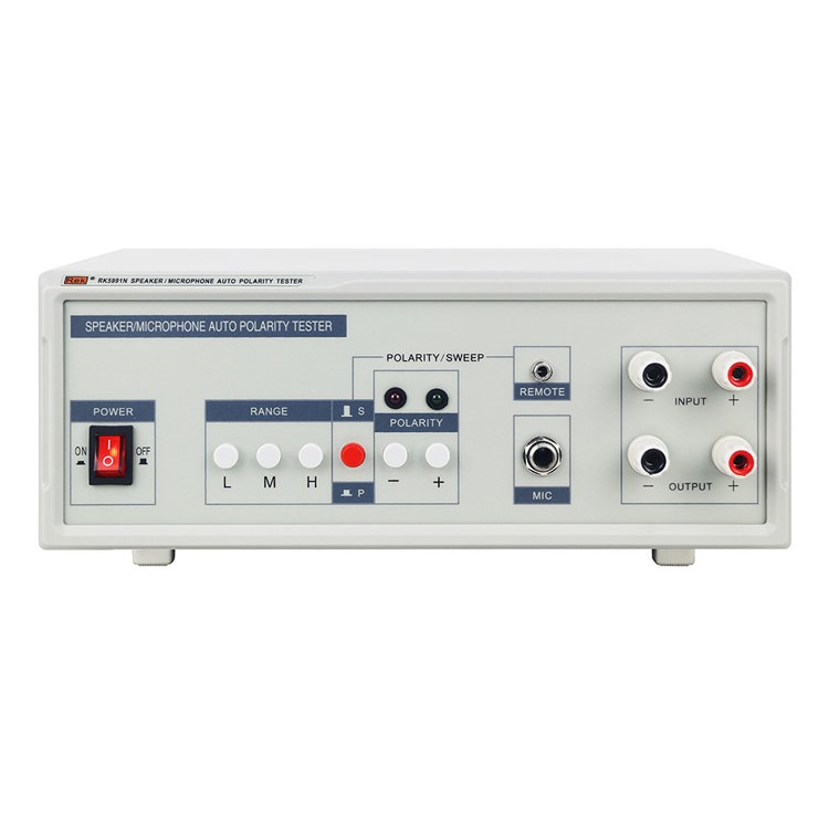 RK5991N話筒極性測(cè)試儀能全自動(dòng)快速判別任何型式、尺寸、材質(zhì)、阻抗之揚(yáng)聲器耳機(jī)、動(dòng)圈受話器的正負(fù)極性。儀器操作簡單,絕無誤判,全自動(dòng) LED 或報(bào)警指示,儀器采用最新脈沖式自動(dòng)快速測(cè)定法,在流水線上同時(shí)檢測(cè)揚(yáng)聲器的純音度指標(biāo)。